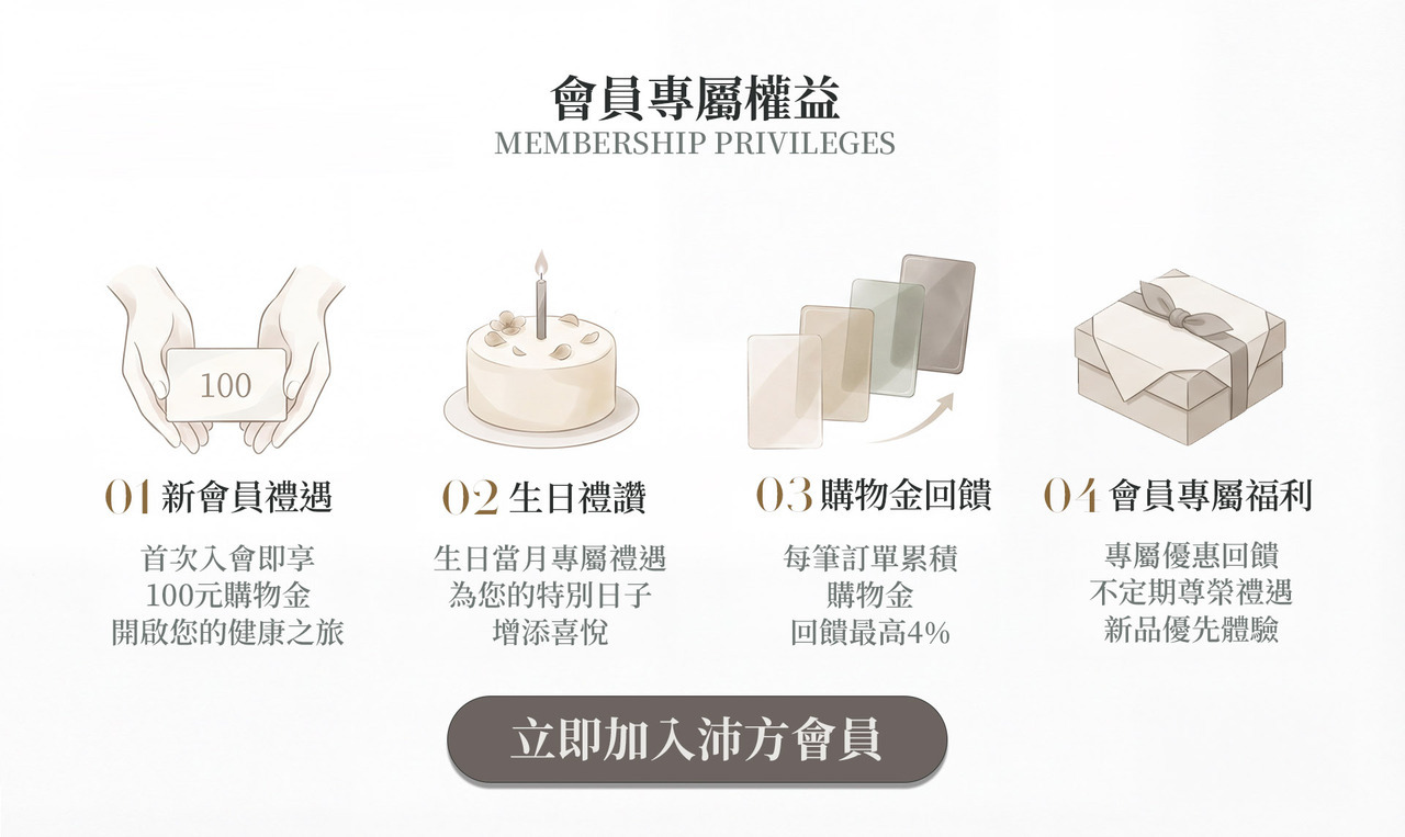成為沛方會員的第一個好處,就是立即獲得 NT$100 的購物金,可在下次購物時直接使用。